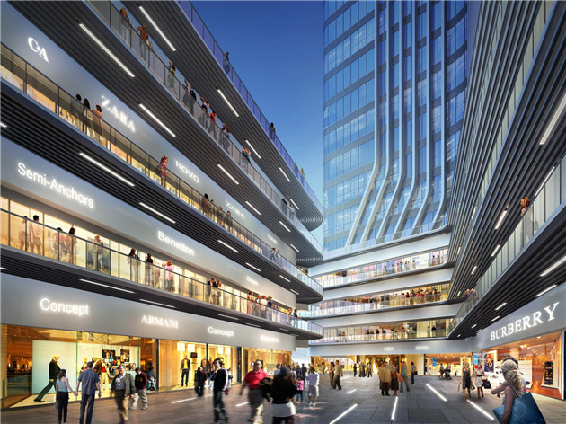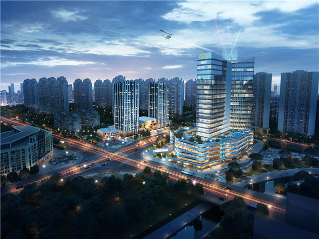 裙楼的□层与塔楼的5楼相连,形成一个露天大平台,共享空中花园,同时在西边□楼打造郴州□无边界泳池,一览沿河风景。