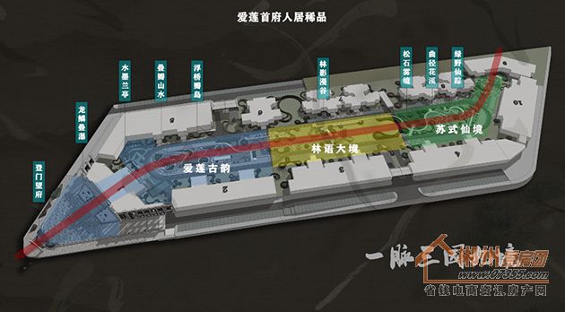 长信·爱莲 首 府将现代东方建筑美学与城市肌理相结合,打造高端集美系的东方意境景观园林。以水墨兰亭、带有莲花元素的山水景观作引,将阳光草坪,曲径花溪、松石雾境融合加入网红水系炮制,打造了一脉三园九境。