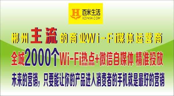 未来,郴州百米生活将提升Wi-Fi上网体验,将在整个郴州包括县城全面铺设Wi-Fi热点将达到1万个,每天为郴州近30万市民提供免费安全的Wi-Fi上网服务,为郴州智慧城市的发展添砖加瓦!
